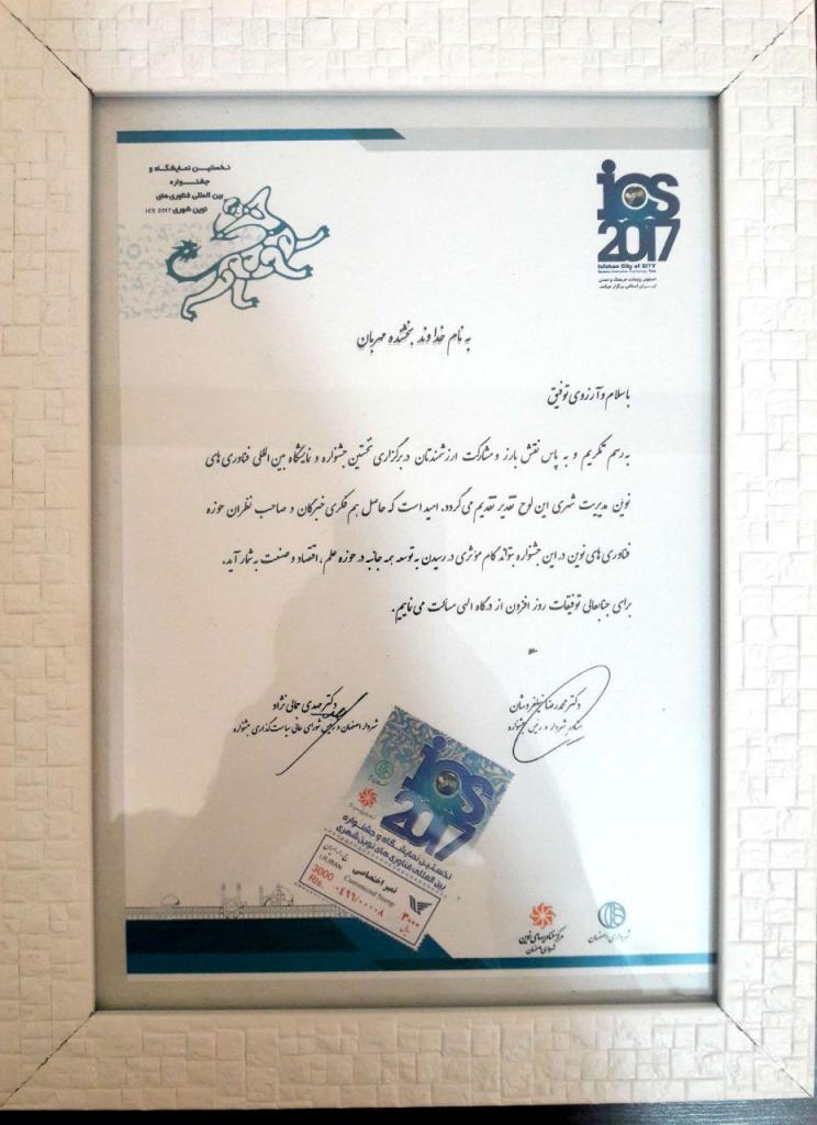 تاریخ نگارش : 1397/1/18 19:06 اشتراک گذاری: 508 افتخارات ویرا دسته بندی شده در: افتخارات / افتخارات تقدیر برگزیده